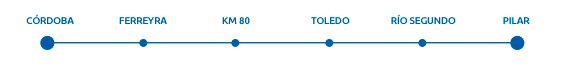 | CORDOBA | KM80 | TOLEDO | RIO SEGUNDO | PILAR |